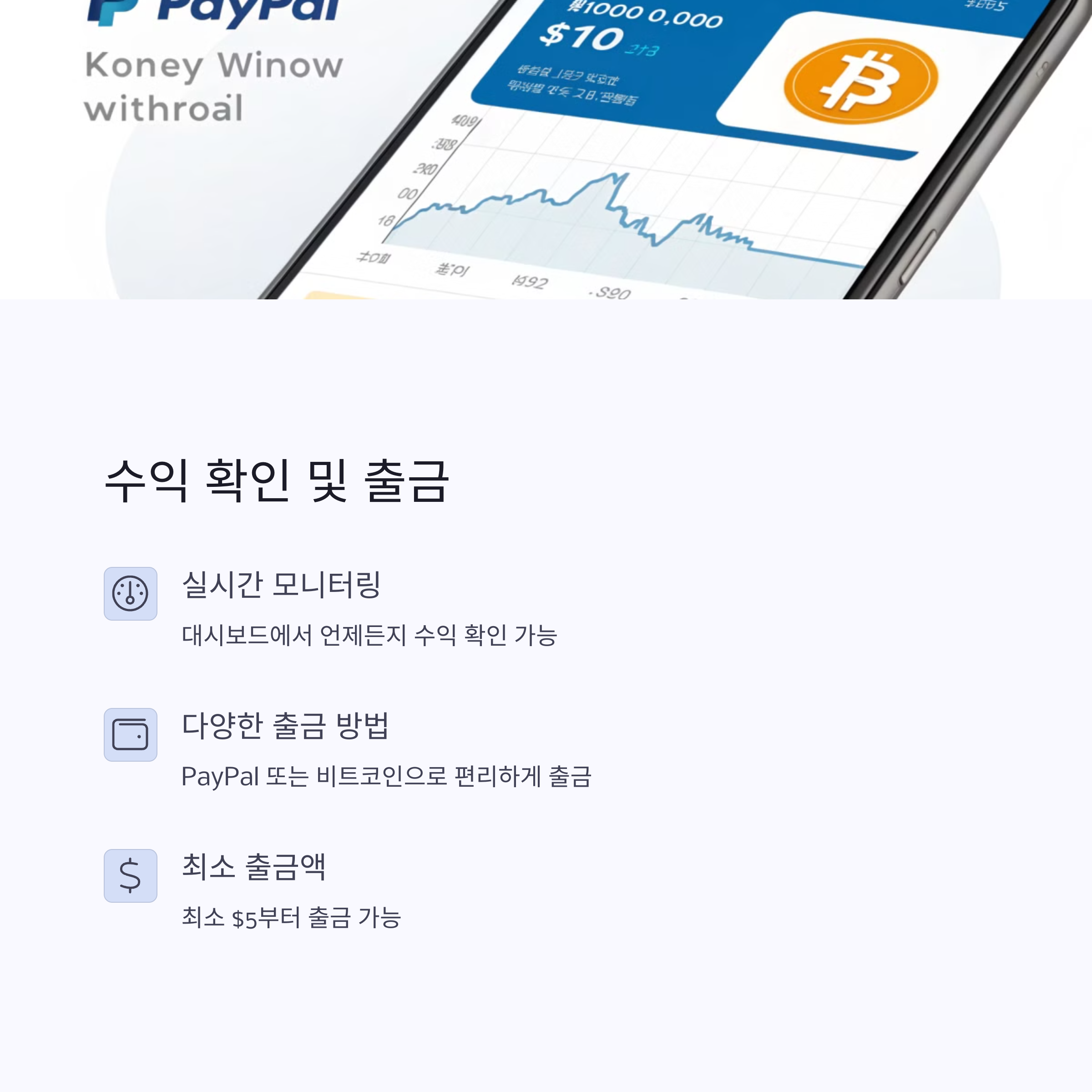 - 출금은 페이팔만 지원 (한국 계좌 직접 송금 불가)