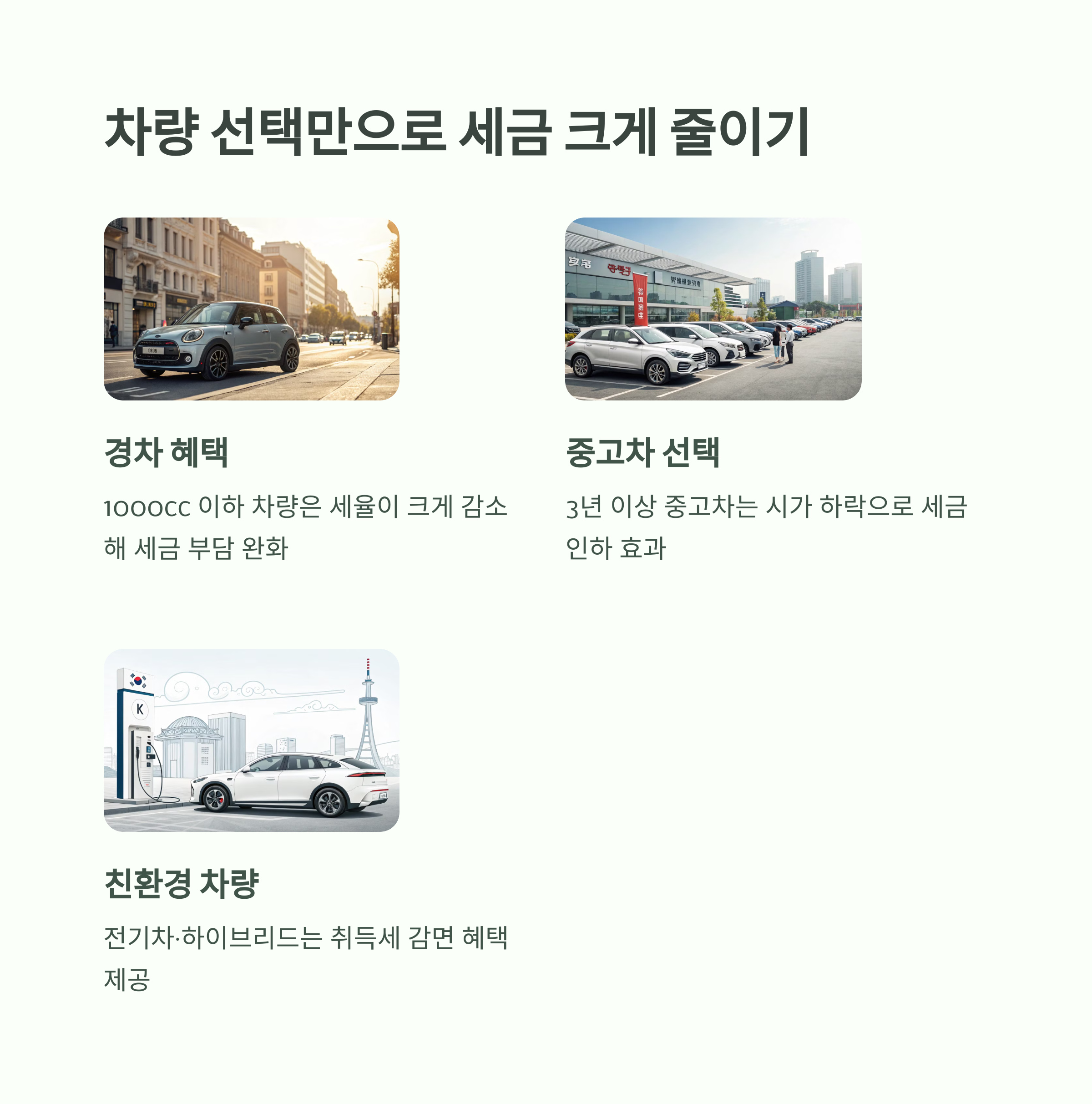 실제 사례: G씨는 신차 대신 3년된 중고차를 구매하여 취득세와 자동차세를 합쳐 약 50만원 절약했습니다.