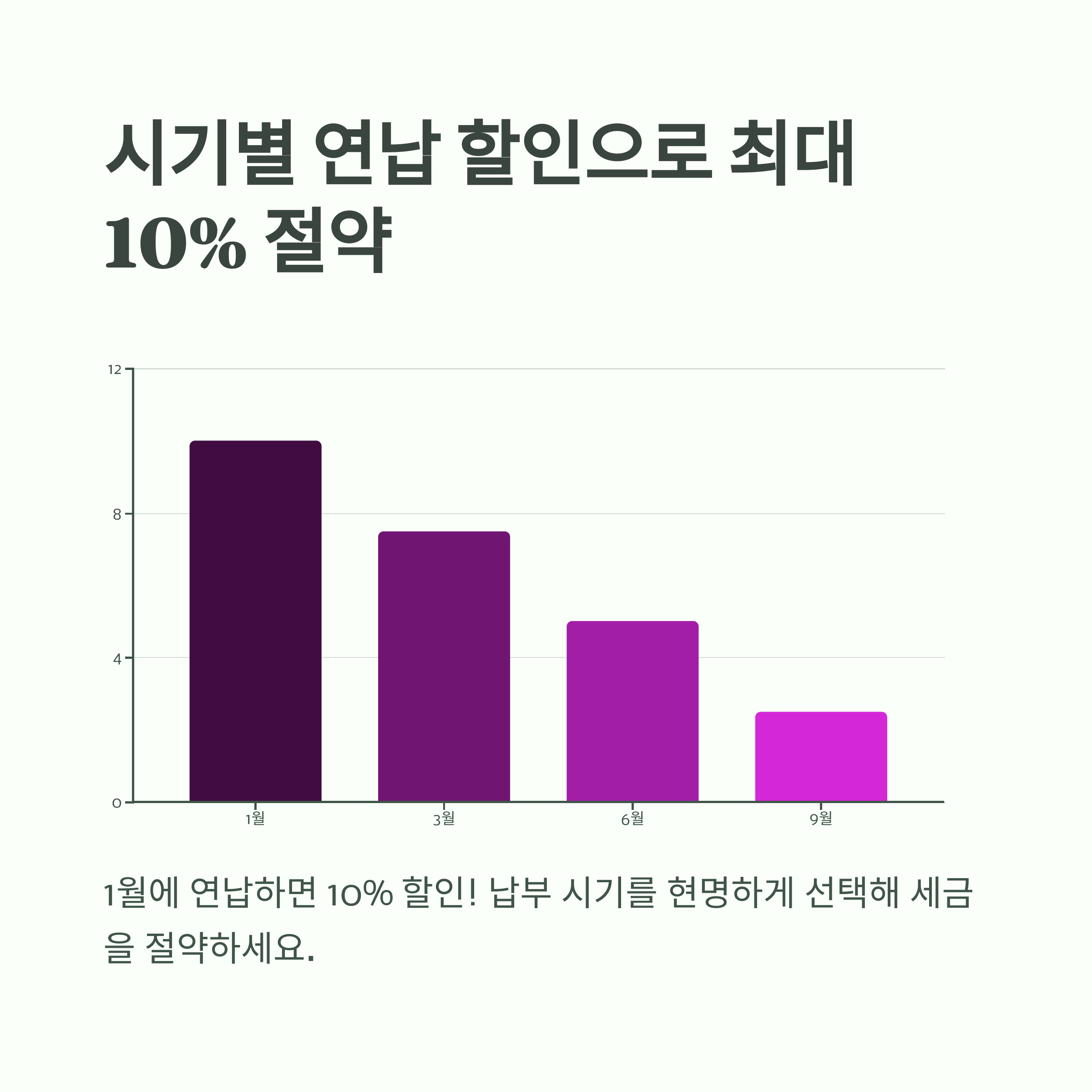 - 1월 16일~31일 사이 연납 신청 및 납부 (10% 할인)
