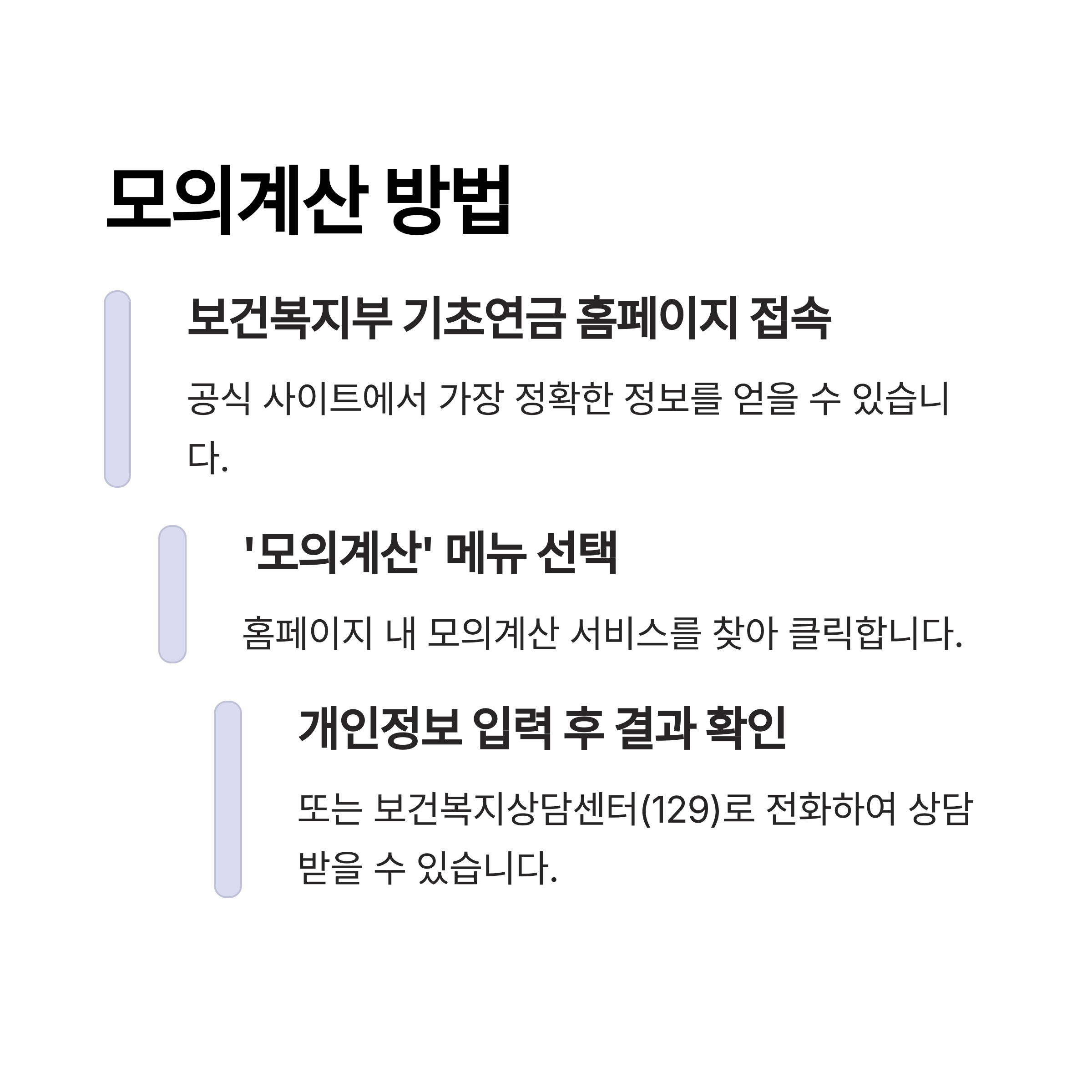 가장 정확한 방법은 보건복지부 기초연금 홈페이지의 모의계산 서비스를 이용하는 것입니다.