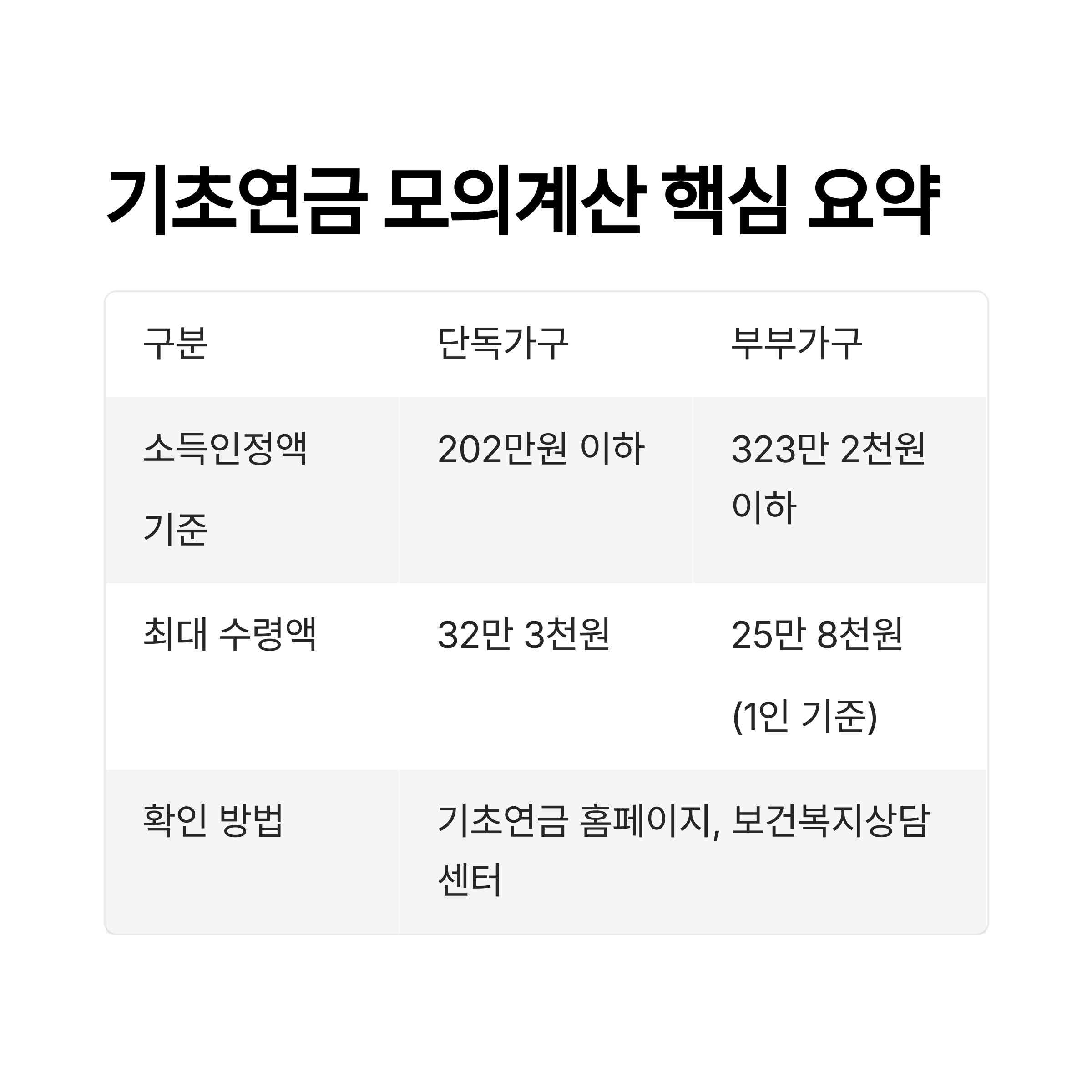 간단 정리: 기초연금 모의계산 핵심 요약표