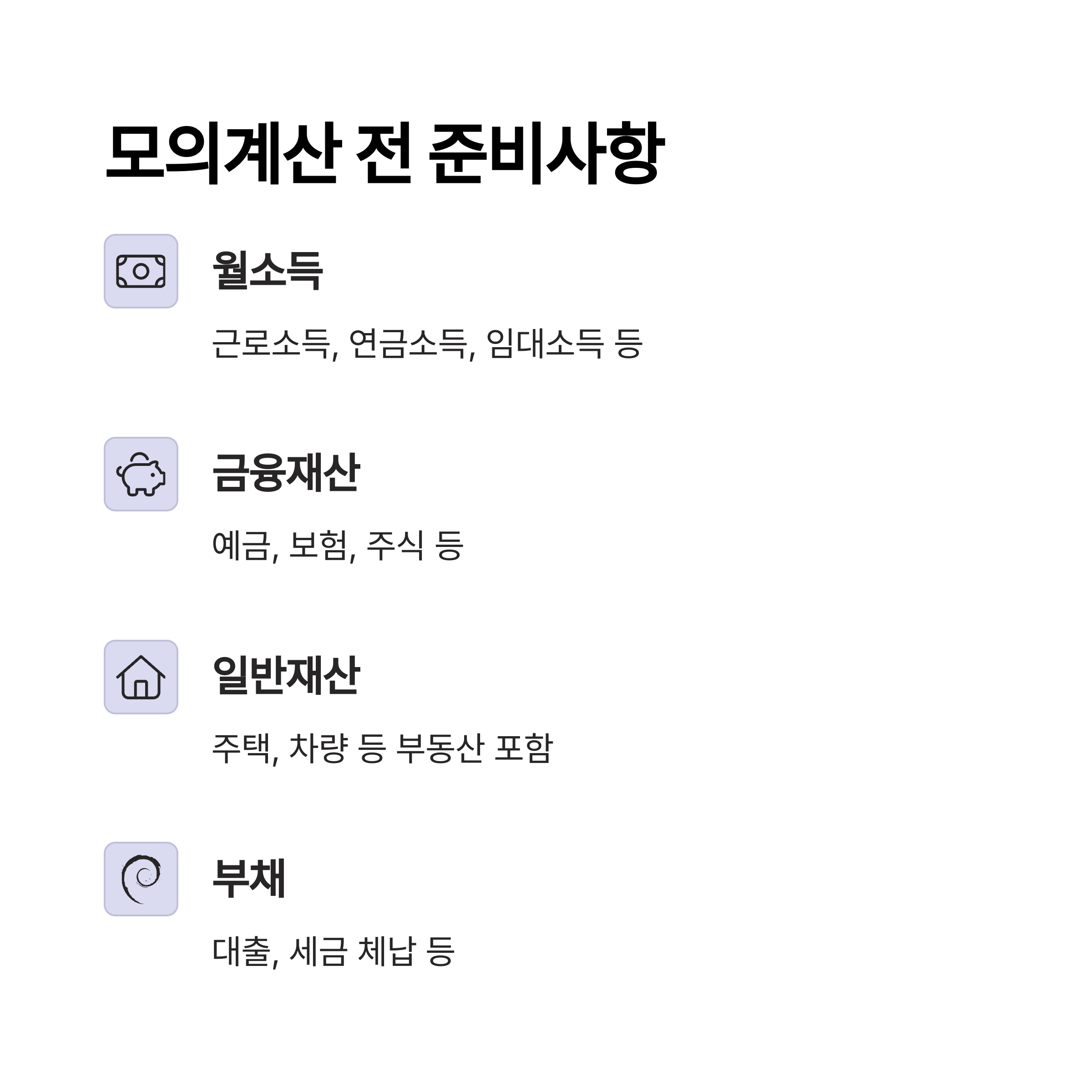 모의계산 전에 준비해야 할 정보는 무엇인가요?